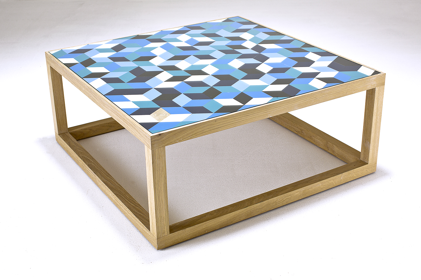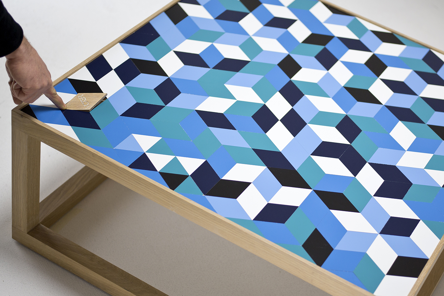 Des formes géométriques en bois à assembler pour composer des motifs uniques Dimensions, couleurs, matières… créez la table qui vous ressemble.